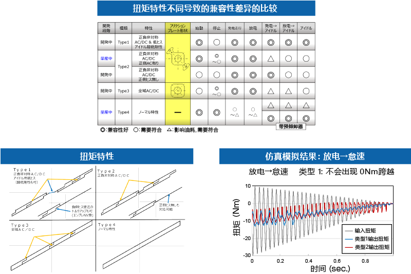 通过不同的摩擦片形状实现4种特性(类型1-4)